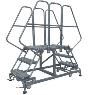 KD 3 Step Steel Rolling Ladder: 30 In Platform Height, 30 In Platform Deep, 16 In Platform Wide, Perforated, 24 In Bottom Wide
